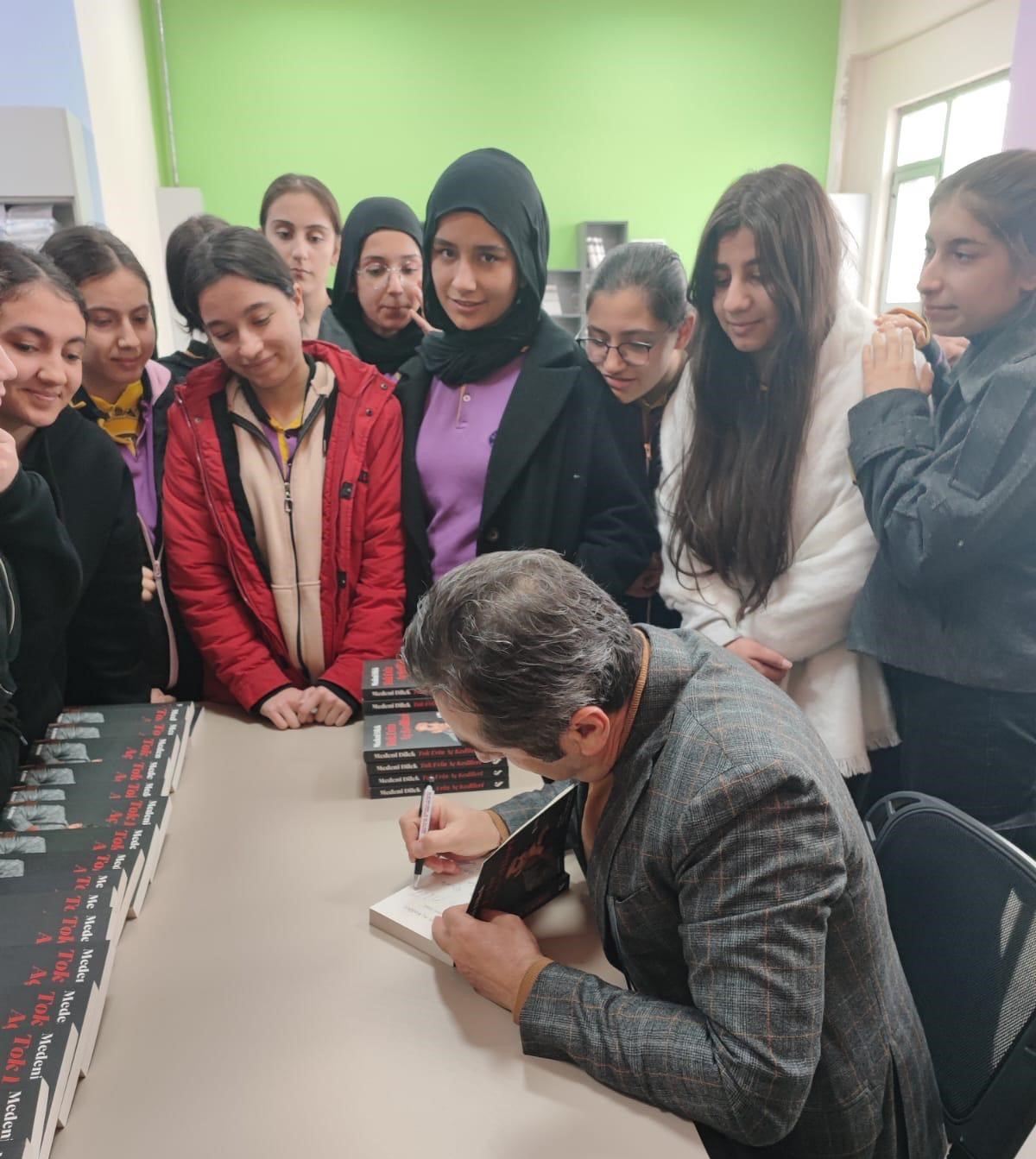 Dilek, öğrencilerle yakından ilgilenerek, kitaplarının kendilerine ilham kaynağı olmasını ve okumayı sevdiren birer araç haline gelmesini diledi. Öğrenciler, Medeni Dilek’in imzaladığı kitaplarını büyük bir heyecanla aldı, yazarla sohbet etme fırsatı buldu.